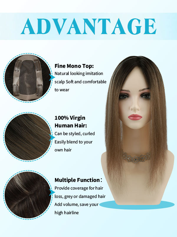 Hair Topper 3"x 5" Mono Base Balayage #B2/8