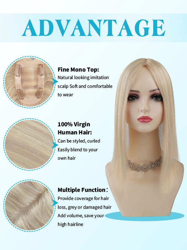 This hair topper is an excellent solution for those experiencing hair loss at the front or gradual thinning, low-density regions and root growth in between color services. It provides instant coverage and fullness exactly where you need it most on the top of your head.