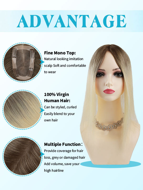 This hair topper is an excellent solution for those experiencing hair loss at the front or gradual thinning, low-density regions and root growth in between color services. It provides instant coverage and fullness exactly where you need it most on the top of your head.