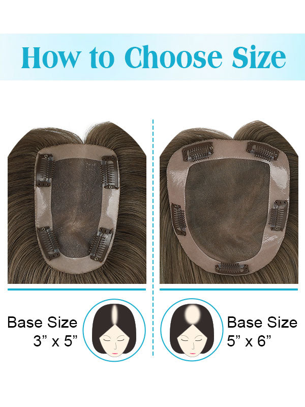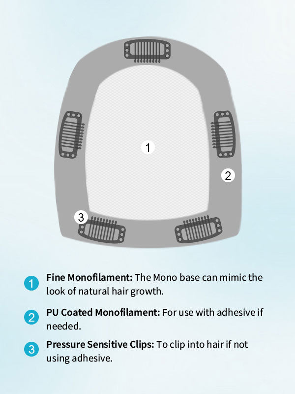 This hair topper is an excellent solution for those experiencing noticeable hair loss at the top, front or gradual thinning, low-density regions and root growth in between color services. It provides instant coverage and fullness exactly where you need it most on the top of your head.