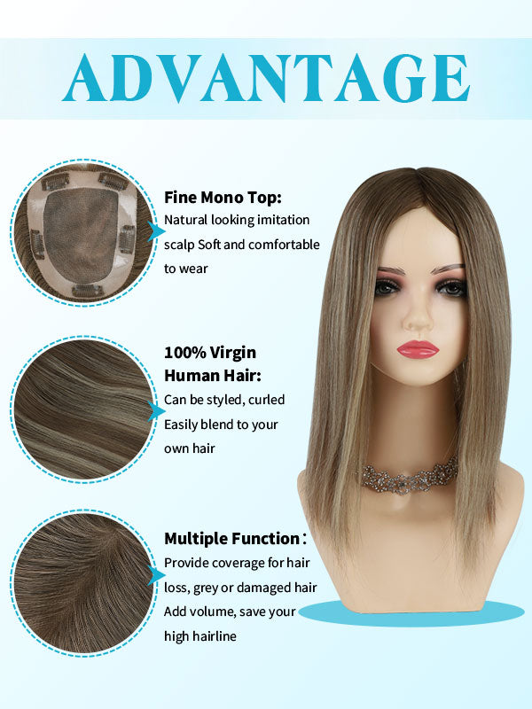 Hair Topper 5"x 6" Mono Base Ombre #8C/60