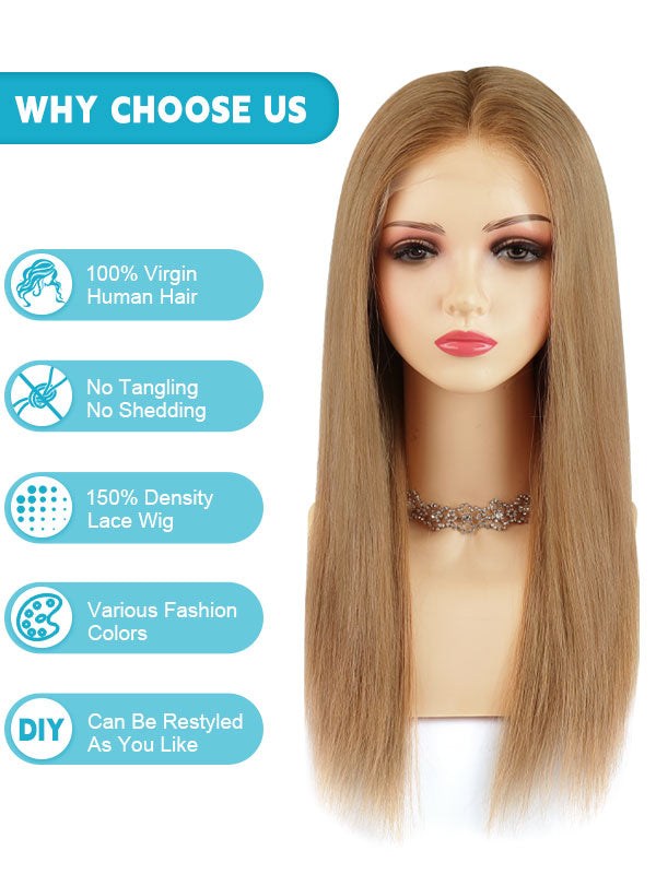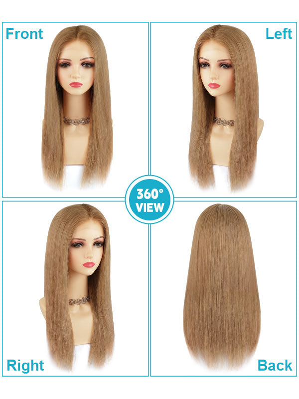 Lace Front Wig Human Hair Rooted Highlights #R8B-P16/22