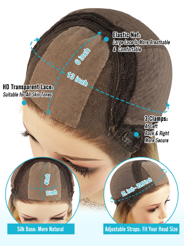 - Cap Construction: Lace front cap with 4"×3" silk top, adjustable straps and combs